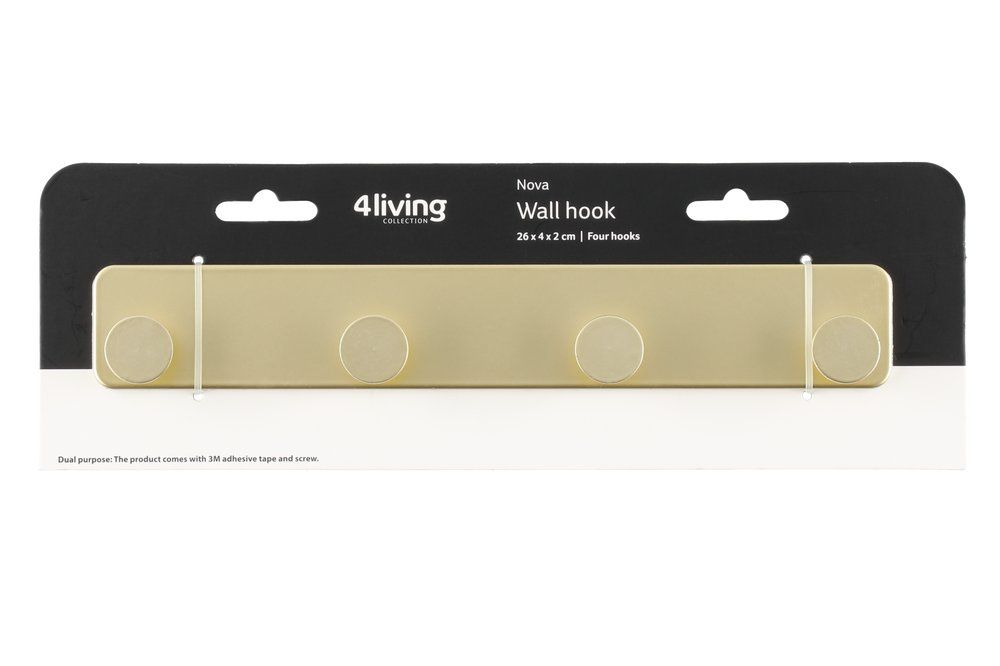 4Living Закачалка за стена с 4 бр. закачалки “Nova“ – цвят злато