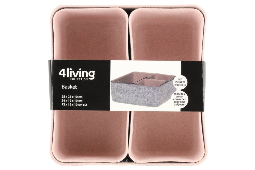 4LIVING Панери за съхранение и организация – 4 бр. различни размери сиво-розови
