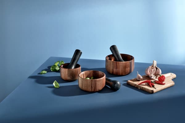 Изработено от безопасна за храна акациева дървесина и елегантен гранит, Taru съчетава естествени материали с традиционна техника на смилане.