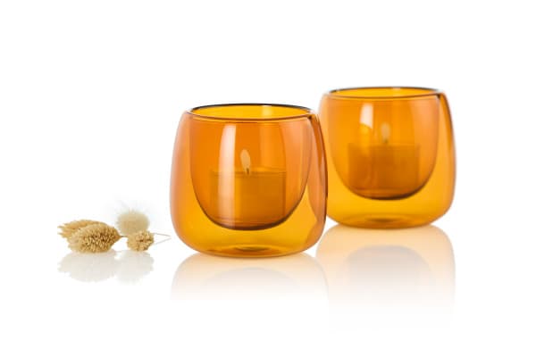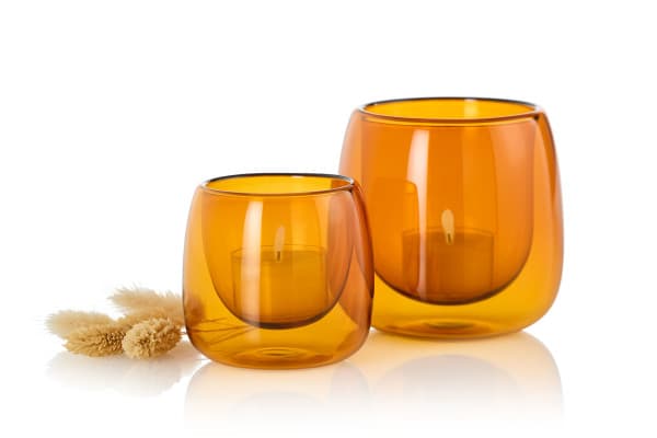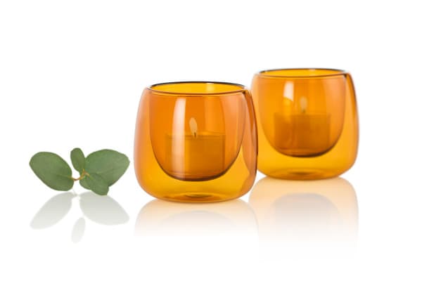 AdHoc Двустенни стъклени свещници 2 бр. Yuna – кехлибар