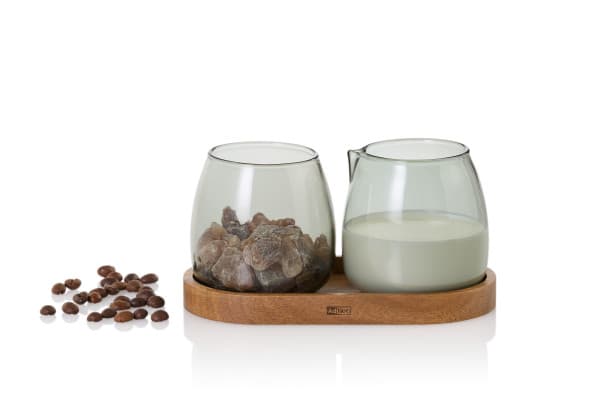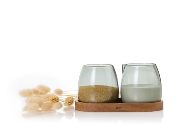 Скандинавски стил, изчистена естетика и естествена елегантност – комплектът за мляко и захар Yuna внася финес във всяка трапеза. Изработен от ръчно издухано боросиликатно стъкло, всеки елемент е уникален и напълно неутрален към вкус и аромат.
