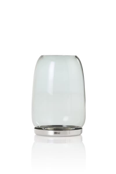 Изработен от ръчно издухано боросиликатно стъкло, всеки свещник е уникален и благодарение на опушено сивия си цвят придава на светлината мека и романтична нотка.