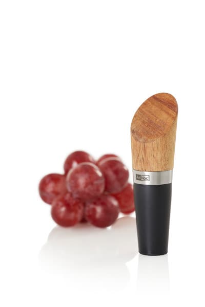 Елегантната комбинация от акациево дърво, матирана неръждаема стомана и висококачествен силикон предотвратява навлизането на въздух и спира процеса на окисляване. Така виното запазва своя вкус и качество дори след отваряне.