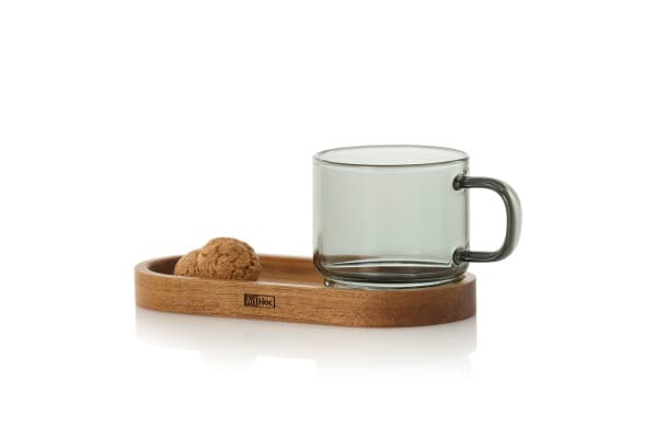 Този комплект е перфектната комбинация между практичност и естетика – идеален избор за хора, които ценят красивото сервиране и качествените аксесоари за дома. Чашата е изработена от ръчно издухано стъкло и е перфектна за ароматно двойно еспресо, а дървената подложка/табла добавя усещане за естествена топлина и премиум качество.
