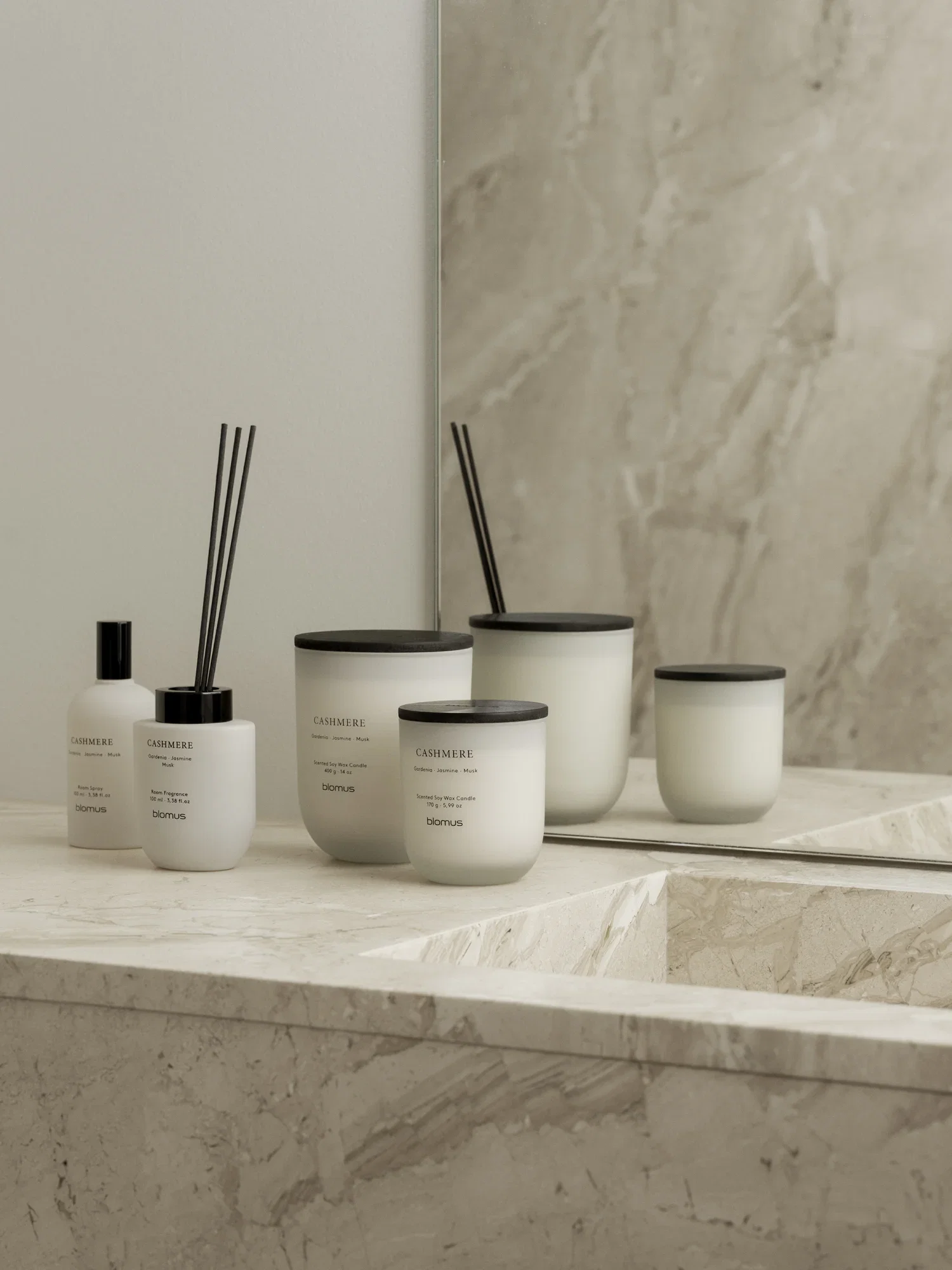 Дифузери, спрейове и свещи от натурален соев восък предлагат малки моменти на спокойствие, енергия и радост.