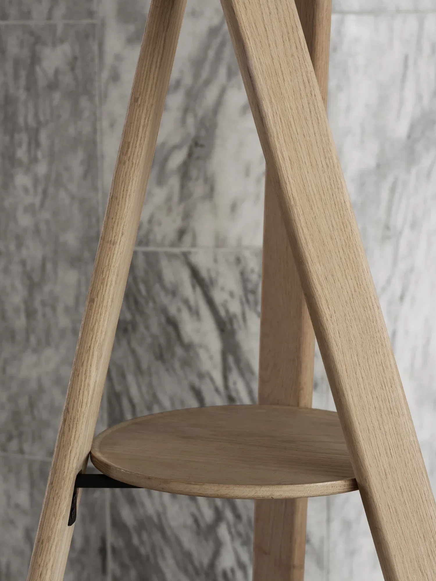 Ключова характеристика е централната му платформа, която служи като удобна поставка за предмети като ключове, портфейли или малки чанти, гарантирайки, че никога няма да излезете от дома си без тези основни неща. Изработена от FSC®-сертифициран естествен дъб, RAKKU се вписва безпроблемно във всяка обстановка, добавяйки нотка на изтънченост, без да претоварва пространството.