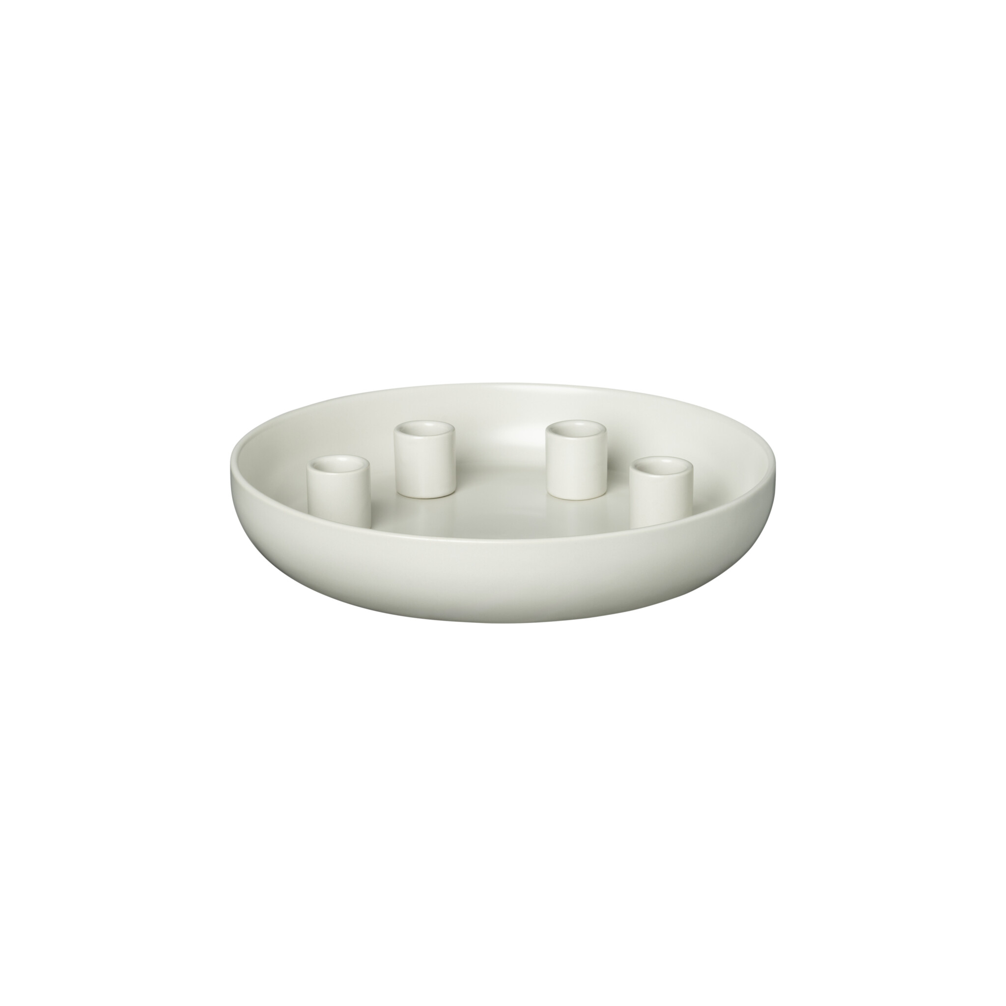 Гладката повърхност и кръглата форма придават на свещника вечна естетика, която се вписва безпроблемно в различни стилове на интериорен дизайн.  С височина 4,5 см, този свещник предлага достатъчно място за 4 свещи, които могат да бъдат поставени сигурно във вградените държачи.