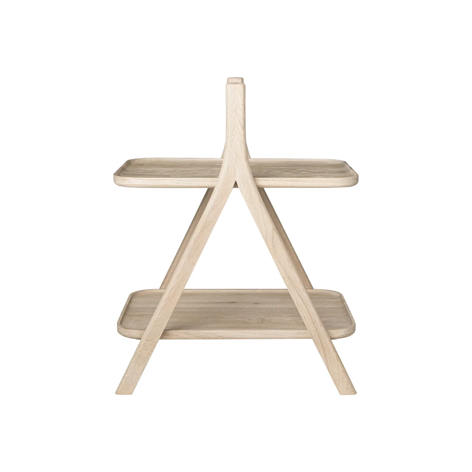 Овалната дръжка и краката с еднакъв радиус образуват отворена „А-образна рамка“, а двата рафта ѝ придават усещане за плаване. Тя предлага стабилност и привлекателен външен вид.