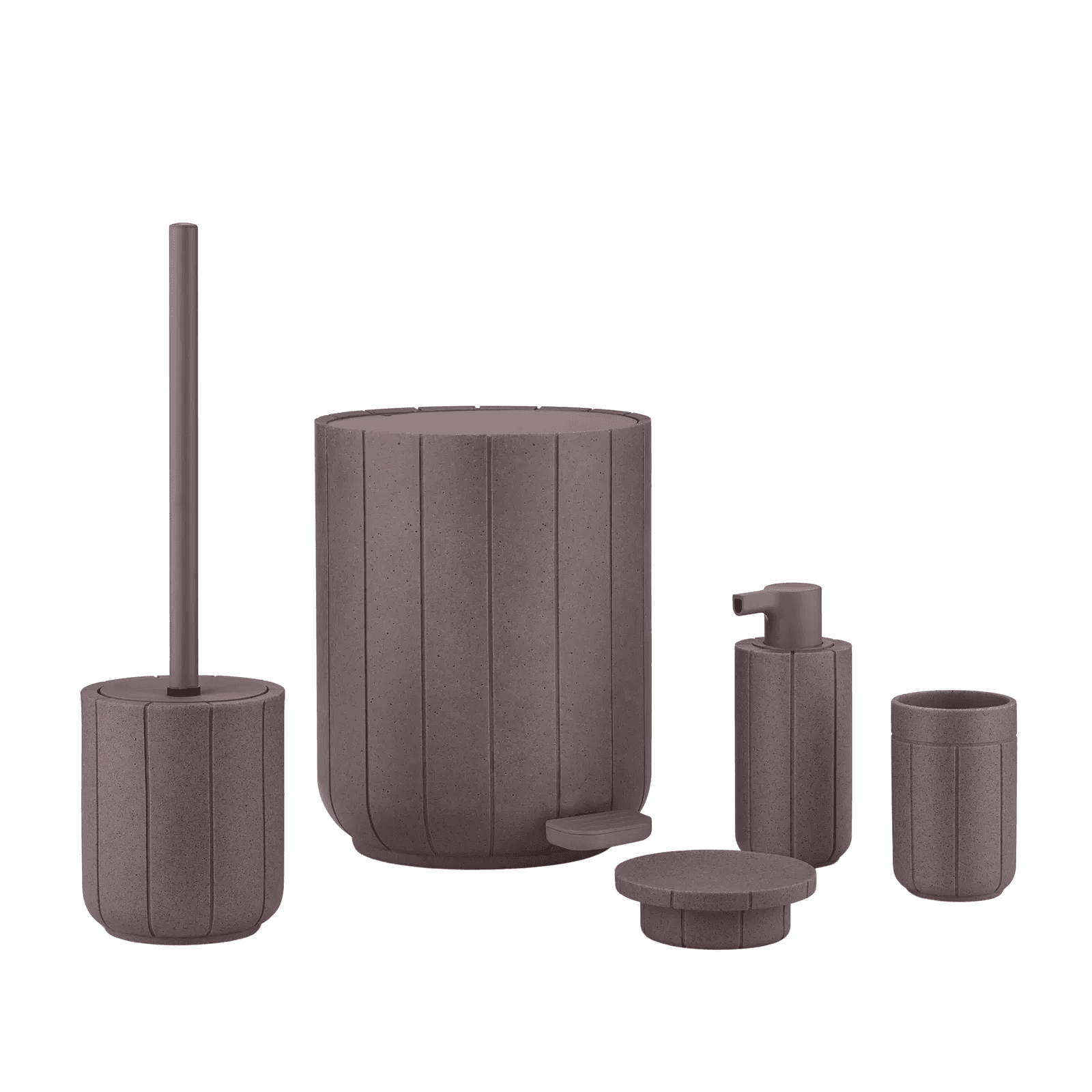 Тоалетната четка KUA допълва серията за баня, изработена от рециклиран полирезин. Тя е с диаметър 11 см и височина 38 см.