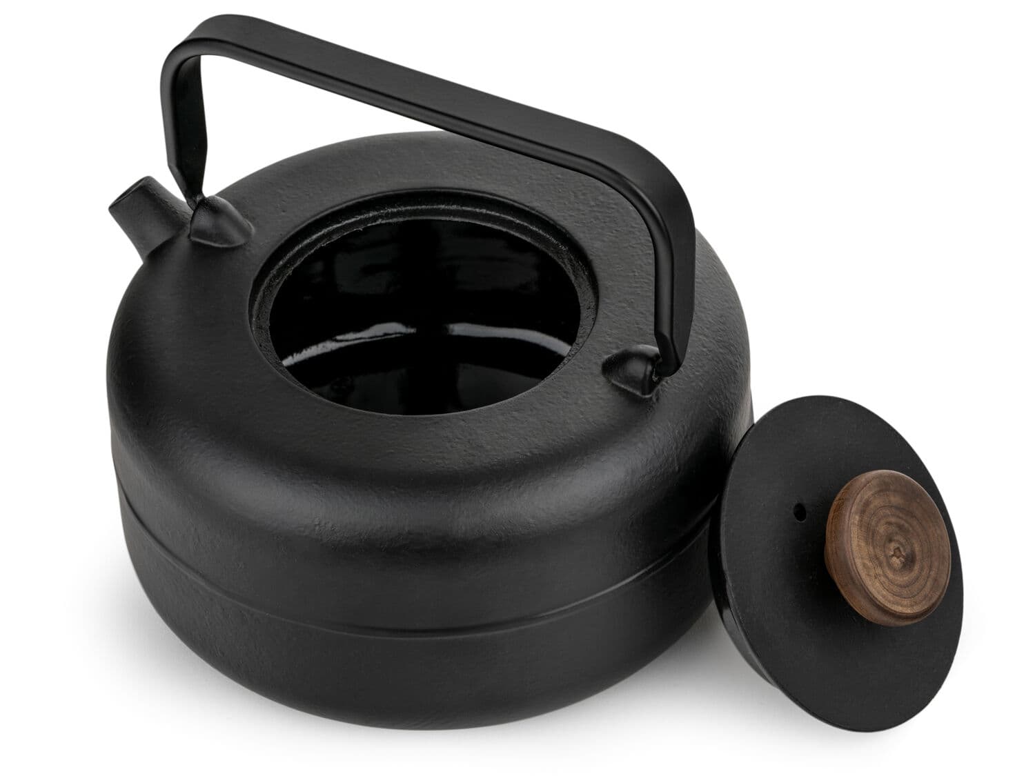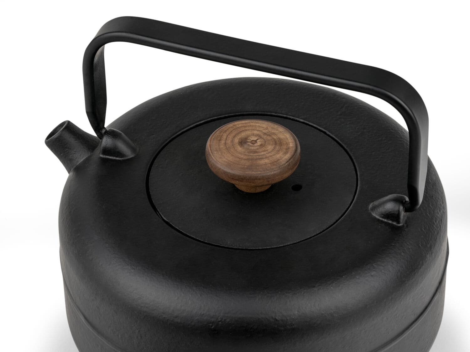 Кръглият, минималистичен дизайн и матовото покритие придават на чайника спокоен вид, докато дървената дръжка осигурява естествена изтънченост и комфорт при употреба.