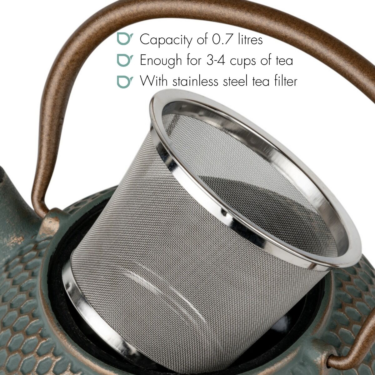 • Висококачествен чугун – Поддържа чая топъл за дълго време без загуба на вкус