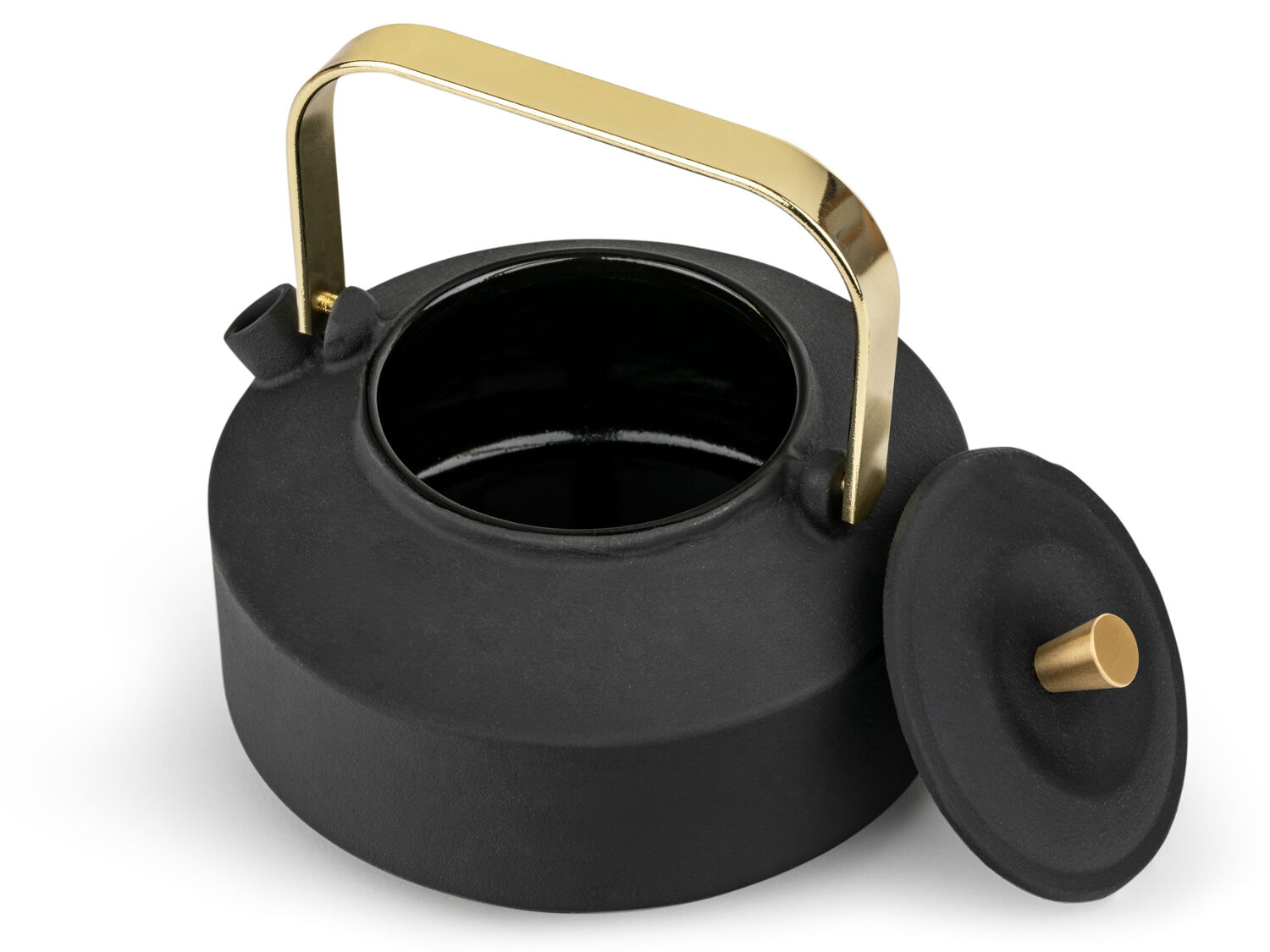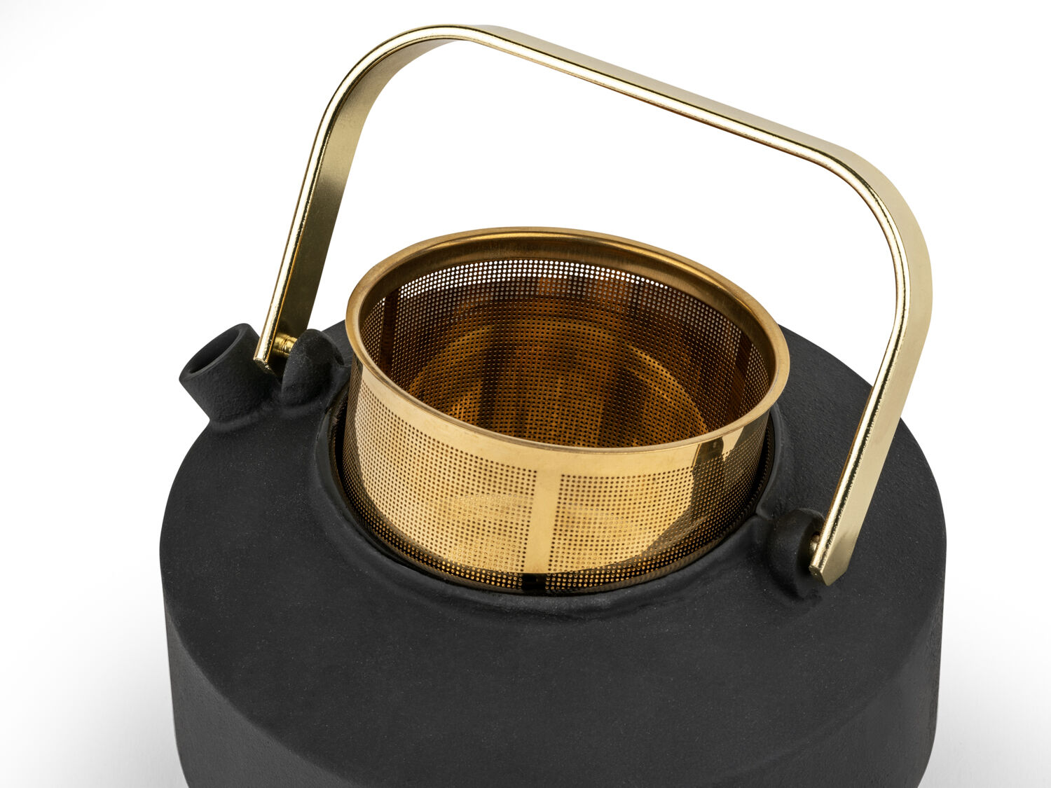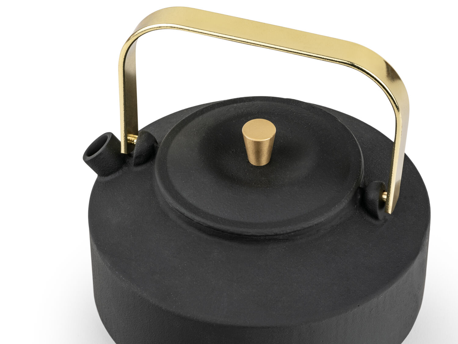 Матовата черна повърхност излъчва спокойствие, а златните елементи добавят фина изтънченост. Здравата чугунена стена задържа топлината за дълго време, което ви позволява да се насладите на множество чаши чай.