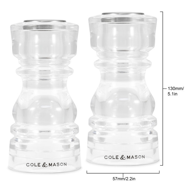 Семпли, елегантни и неподвластни на времето – приборите за сол и пипер London на Cole & Mason носят онзи класически чар, който стои естествено на всяка маса. Кристално чистото акрилно тяло разкрива съдържанието и придава лекота на дизайна, а компактният размер ги прави удобни за ежедневна употреба.