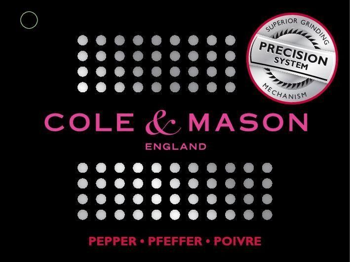 Препоръчваме да използвате висококачествен черен пипер и едра каменна сол във всички мелници „COLE & MASON“ .