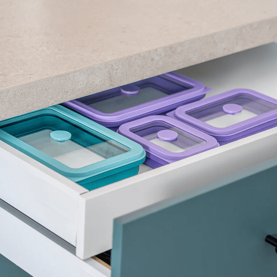 Независимо дали е в микровълнова фурна, фурна, хладилник или фризер – тази кутия е идеална за запазване на храна, затопляне или за незабавна консумация. 100% херметичното уплътнение запазва всичко свежо и сигурно, а сгъваемият дизайн спестява ценно място. Перфектна за вашето ежедневие – минимално необходимо пространство, максимална свежест!