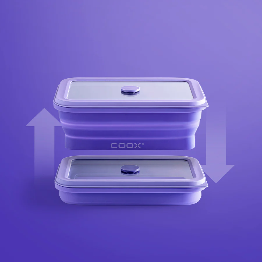 Големи порции, максимална свежест – сгъваемата кутия за съхранение на храна L (1 литър) за Вашите ежедневни нужди!Сгъваемата кутия за съхранение на храна COOX в размер L (1 литър) е перфектният избор за по-големи порции, салати или провизии. Със своята здрава стъклена основа и стабилен стъклен капак, изработен от висококачествен силикон, тя съчетава функционалност с модерен дизайн. Независимо дали е в хладилник, фризер, фурна или микровълнова печка – тази универсална кутия е идеална за съхранение, затопляне или приготвяне на по-големи ястия веднага. 100% херметичното уплътнение гарантира, че храната Ви ще остане свежа и няма да изтекат течности. Практичният ѝ сгъваем дизайн спестява място и го прави истински ежедневен помощник.