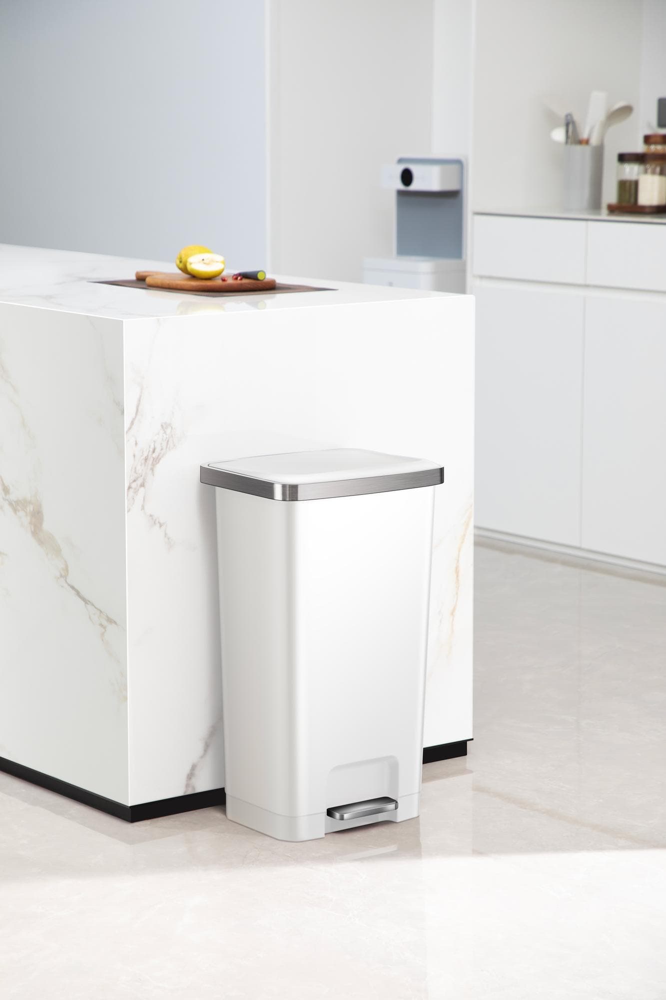 Hana II съчетава функционалност и елегантен дизайн. Този модел от висококачествена пластмаса е подчертан от впечатляващ ръб с вид на неръждаема стомана и капак с плавно затваряне. Кошът няма вътрешна кофа, което осигурява до по-голям капацитет. Интегрираният държач на торбата гарантира, че торбата за боклук остава спретнато на място и извън полезрението, допринасяйки за подредения и професионален външен вид.