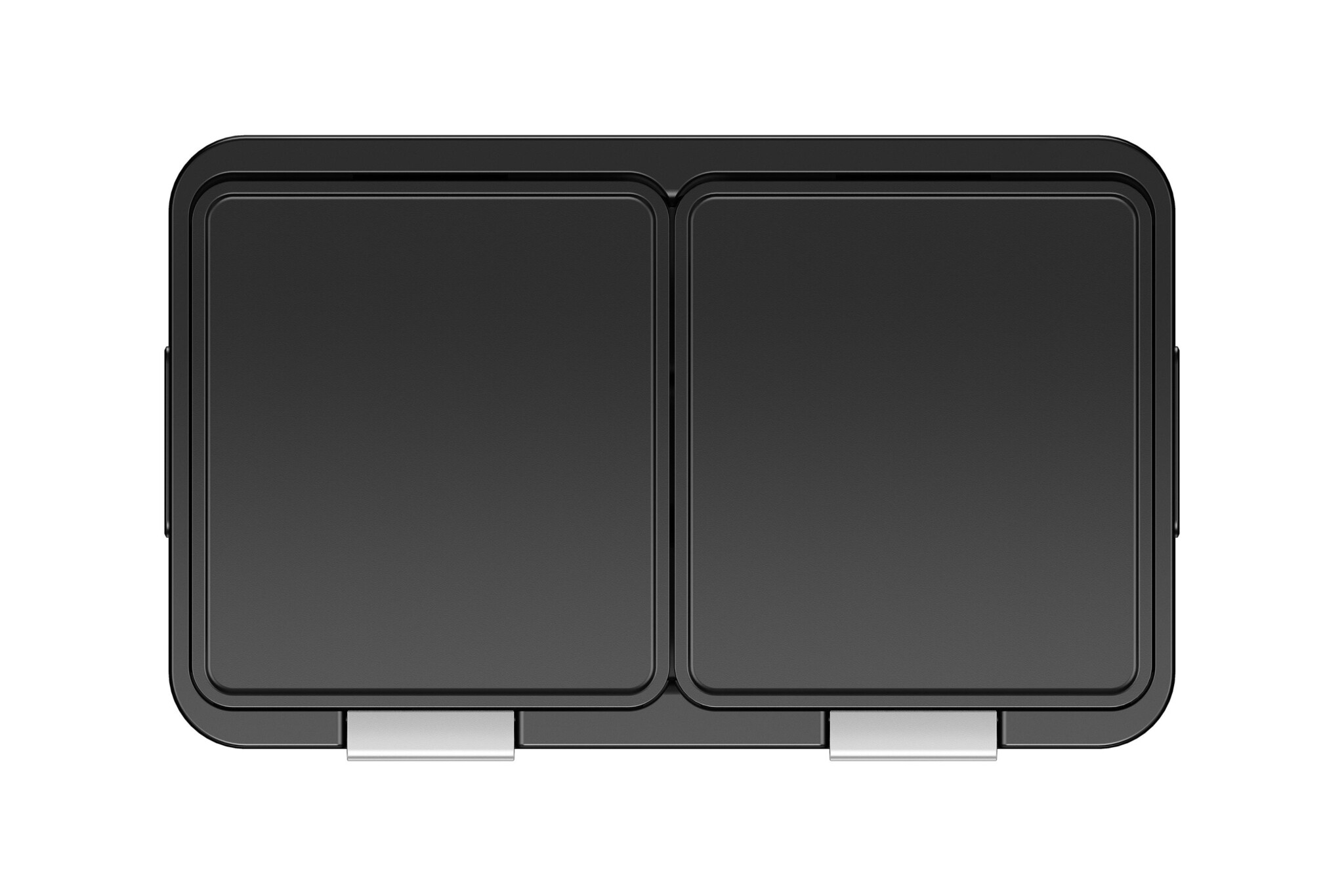 Правоъгълен кош от матирана неръждаема стомана с покритие против пръстови отпечатъци. С два отделни пластмасови капака Touch Open за отваряне с докосване.