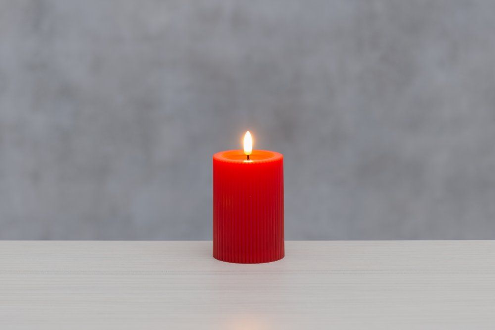FINNLUMOR LED свещ с 3D пламък и оребрен дизайн – червена