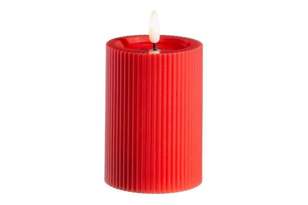FINNLUMOR LED свещ с 3D пламък и оребрен дизайн - червена