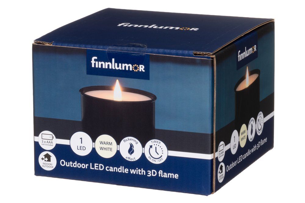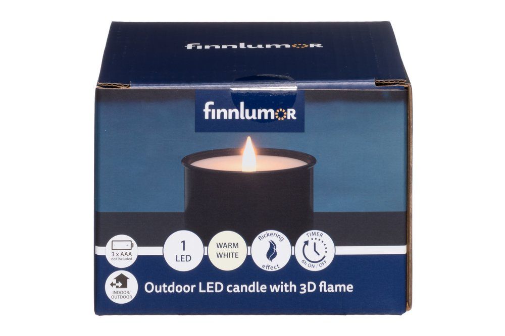 FINNLUMOR LED свещ с 3D пламък “Marchall“ – черна