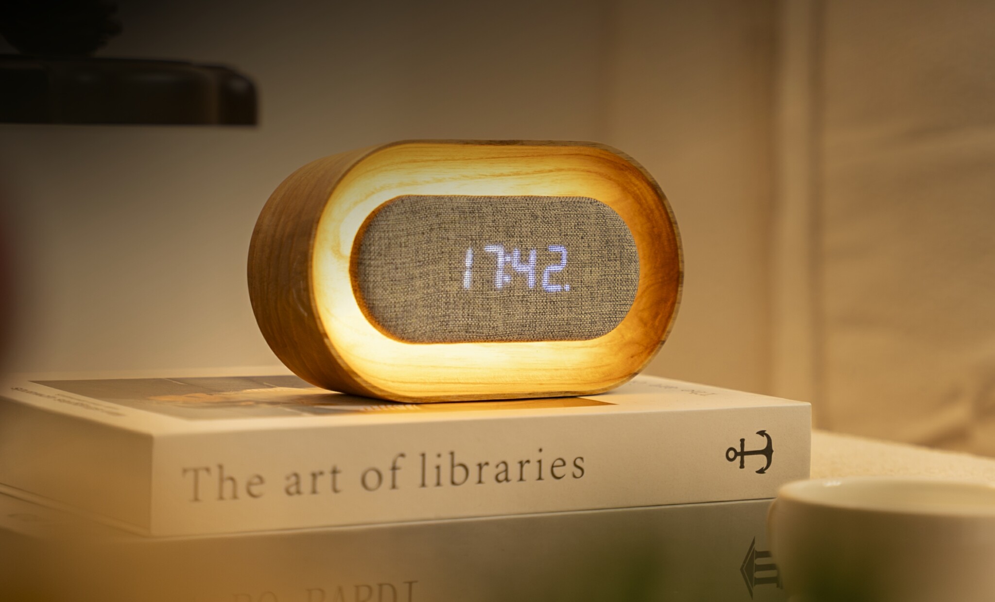 С Lumos всяка сутрин започва с усещането за спокойствие и хармония. Този съвременен часовник комбинира функционалност с естетика – изчистен дизайн два силуета (овален и квадрат) и два естествени финиша (топъл орехов и светъл бял ясен), които се вписват лесно във всяко пространство.