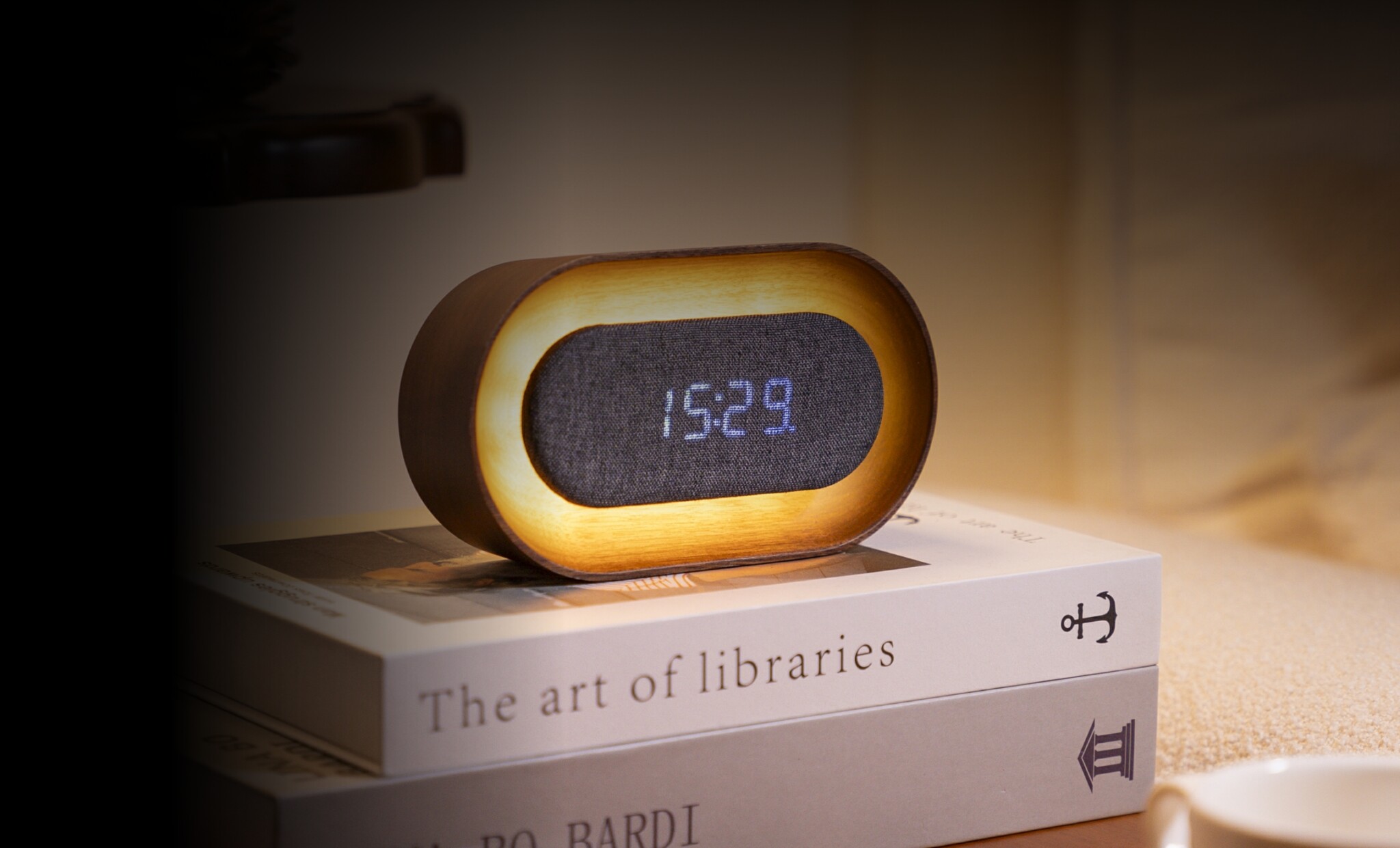 С Lumos всяка сутрин започва с усещането за спокойствие и хармония. Този съвременен часовник комбинира функционалност с естетика – изчистен дизайн два силуета (овален и квадрат) и два естествени финиша (топъл орехов и светъл бял ясен), които се вписват лесно във всяко пространство.