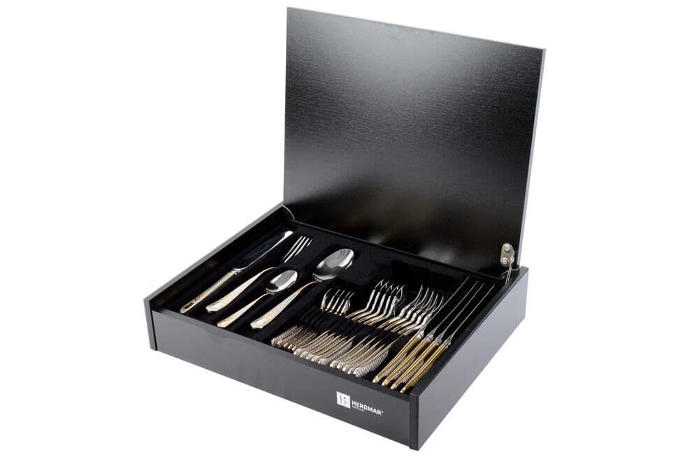 ;HERDMAR Комплект прибори за хранене “GUELL“- за 12 човека от 51 части с позлатен елемент