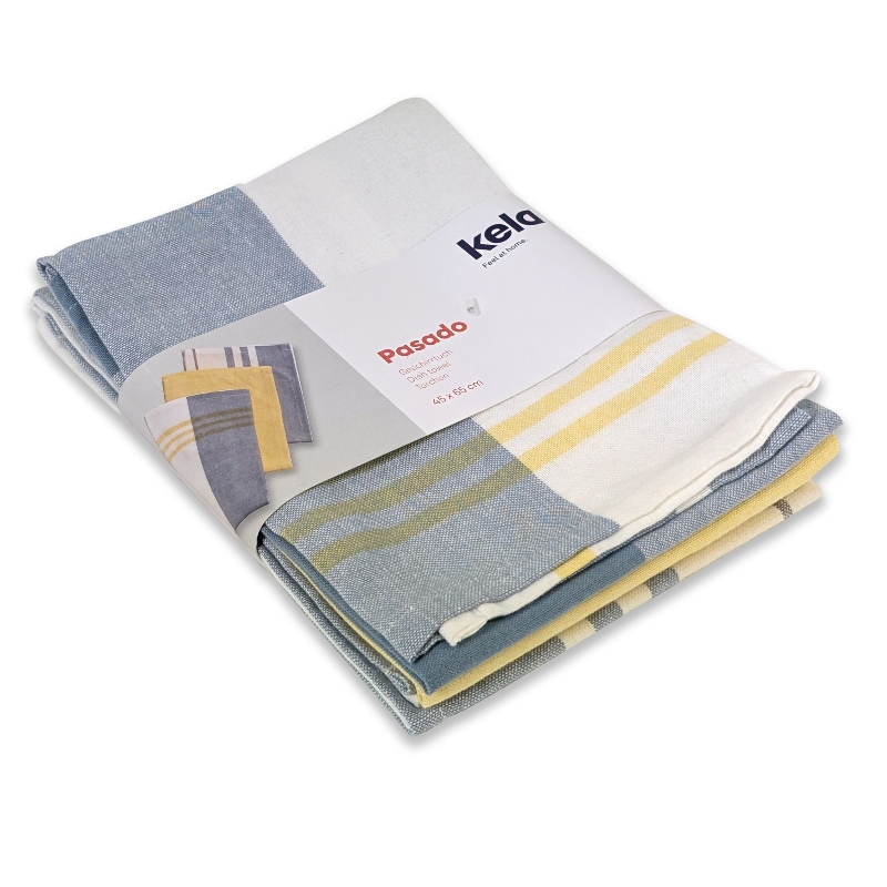 KELA Комплект от 3 бр. домакински кърпи за съдове “Pasado“ – 65х45 см – жълто-сини