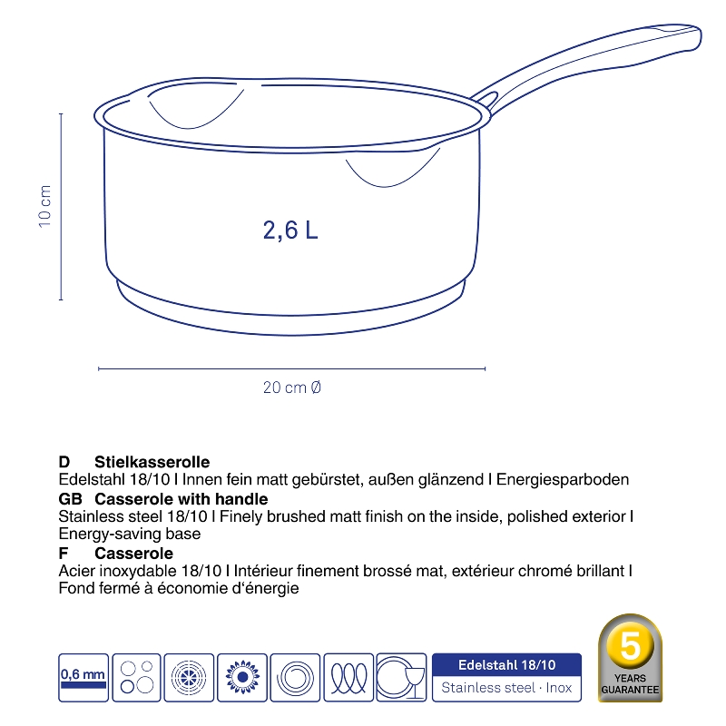 • Енергоспестяващото многослойно дъно е обработено с „Impact-Bonding-Technologie”. Това позволява перфектно сцепление, максимална устойчивост на големи температурни амплитуди и оптимално разпределение на топлината.