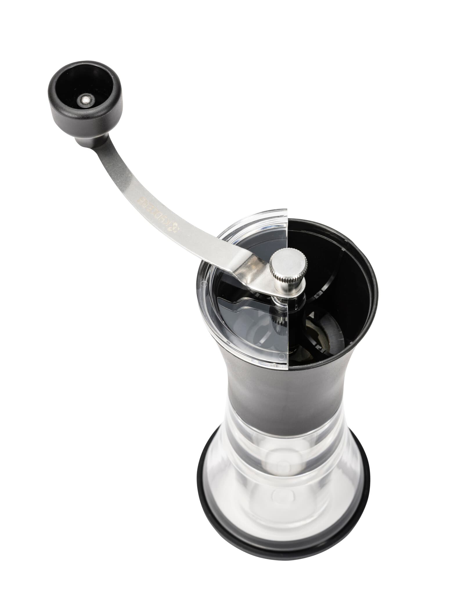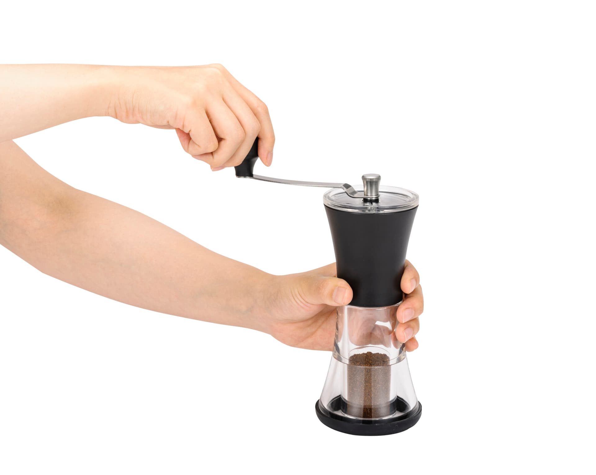 Можете да регулирате мелачката за фино или едро смляно кафе. Неплъзгащата се силиконова основа гарантира, че мелачката остава стабилна, докато я използвате.
