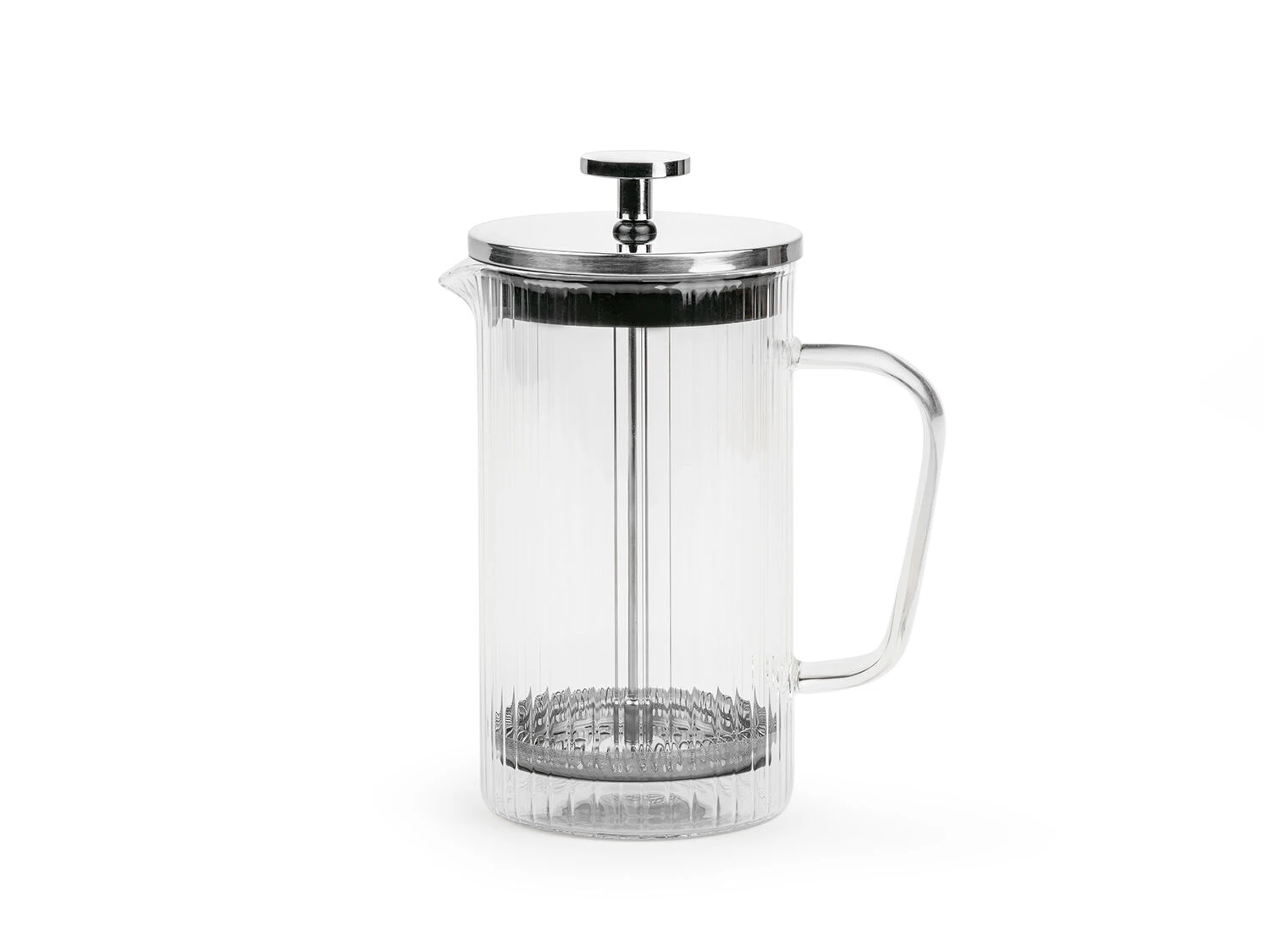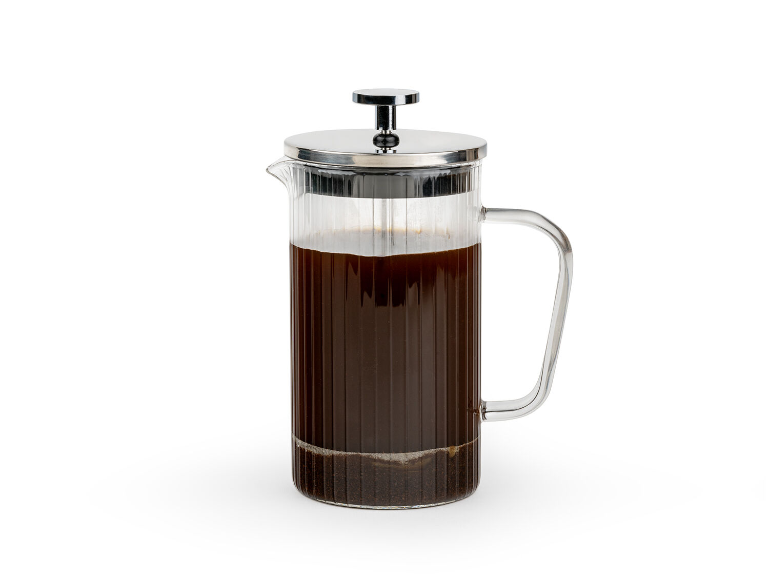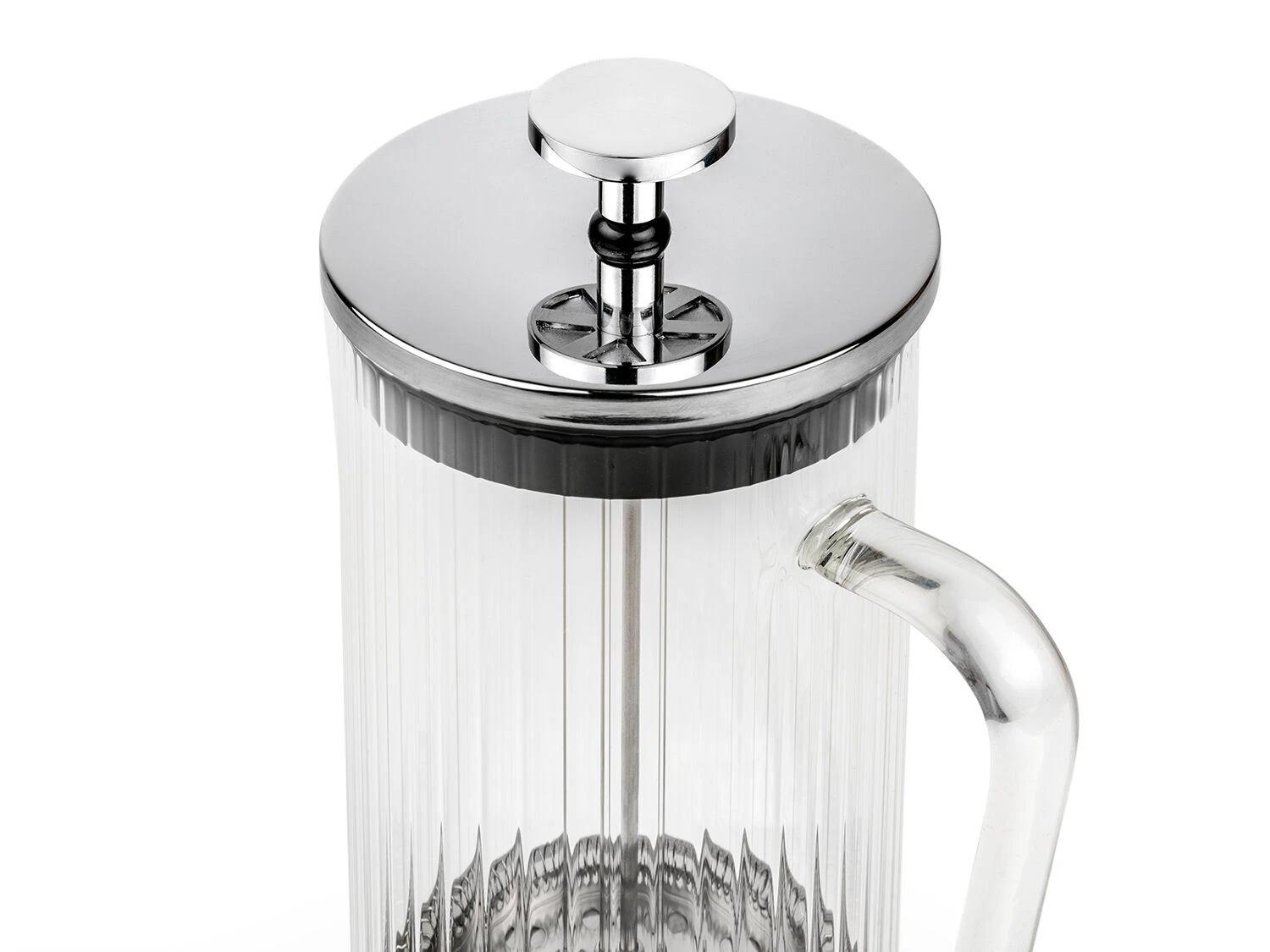 С тази френска преса можете бързо да приготвите най-доброто кафе или чай. Времето за запарване определя силата на напитката. Изработена от красиво стъкло на райета.