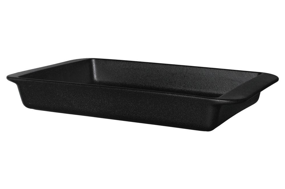 Керамична, издръжлива и стилна черна тава за печене, която служи и като поднос за сервиране. Устойчива на топлина до 220 градуса. Може да се мие в съдомиялна машина.