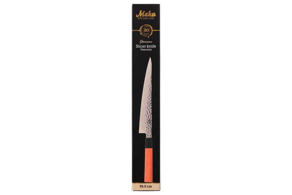 Ножът от дамаска стомана с дръжка от кевазинго и абанос, допълнен с характерната „кована“ повърхност на острието, е не просто кухненски инструмент, а прецизно изработен продукт, който съчетава сила, издръжливост, функционалност и изключителна красота. При правилна употреба и редовна поддръжка той може да служи вярно и да запази своята стойност и очарование в продължение на десетилетия.