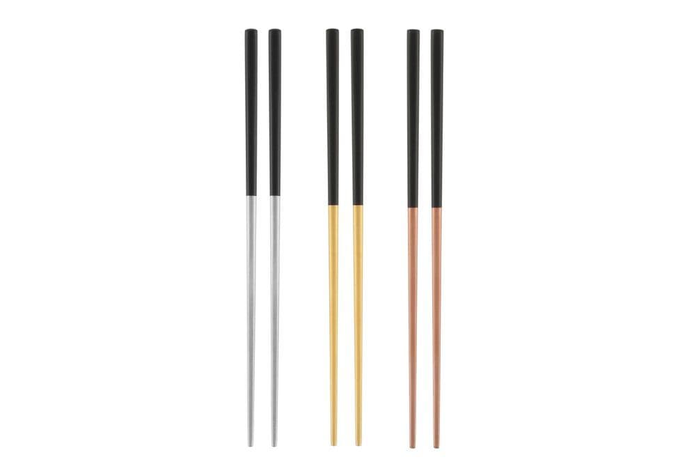 С дължина около 23 см, те предлагат удобен захват и контрол, независимо дали сервирате суши, нудли или други деликатеси. Комбинацията от матово черни дръжки и метални акценти в стоманен, златист или розово-златист нюанс добавя визуален контраст и прави комплекта подходящ за маса както в ежедневието, така и при по-изискани сервирания.