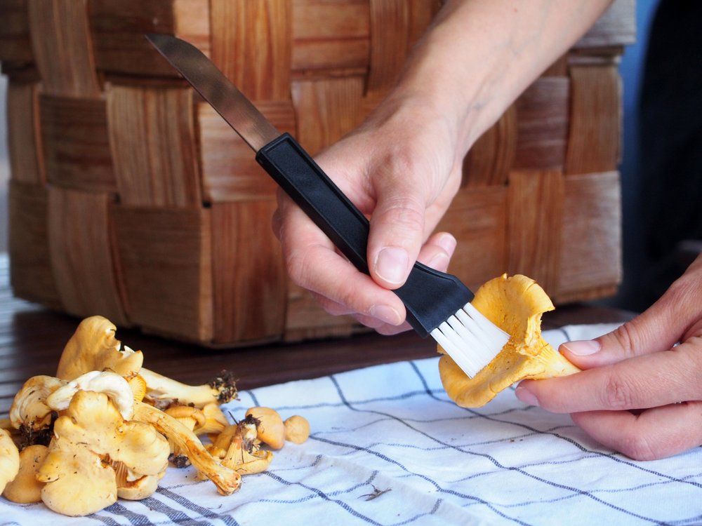 Ножът за гъби има удобна четка за почистване в края на дръжката, за да се премахнат внимателно всички отпадъци от гъбите.