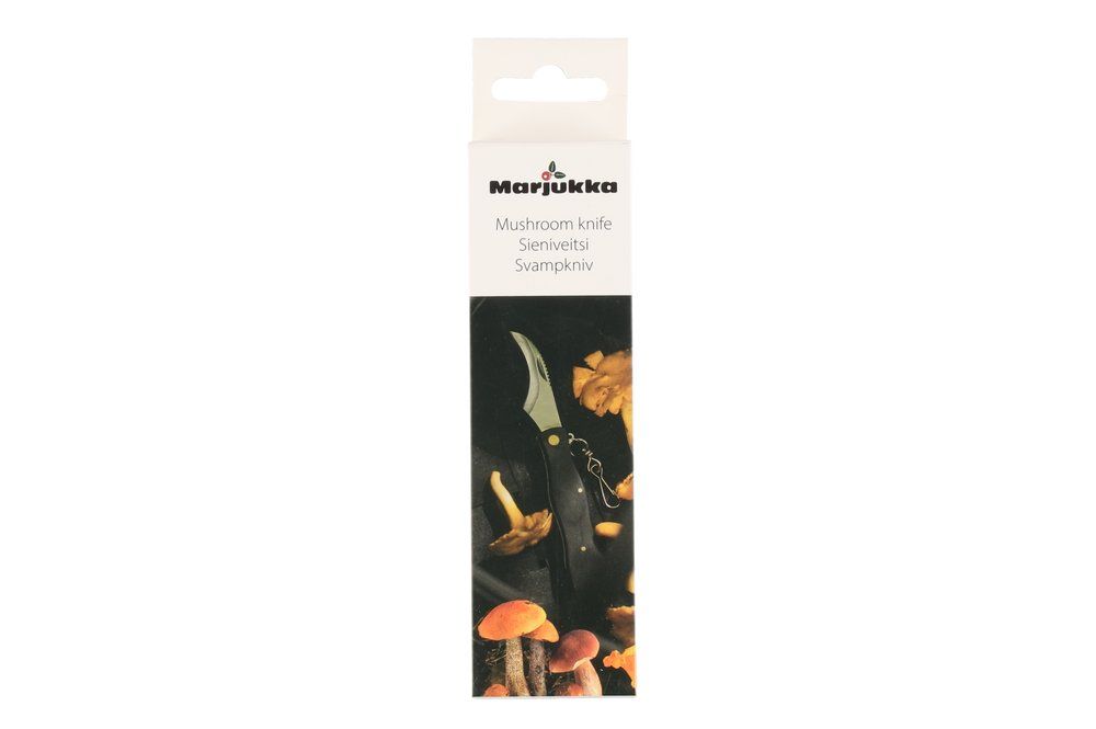 MARJUKKA Сгъваем извит нож за гъби с дървена дръжка и четка