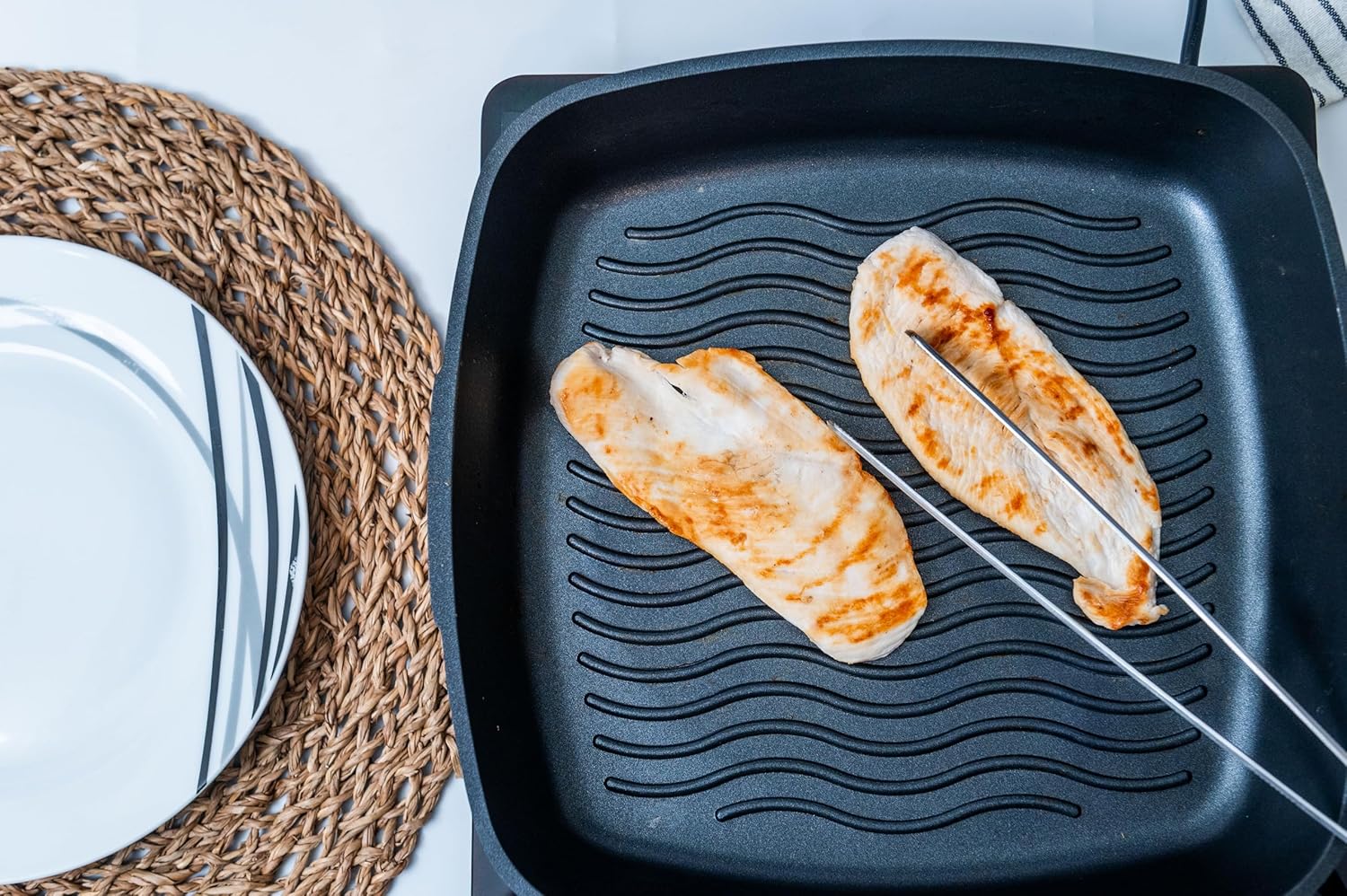 Това е идеален тиган за пържоли, риба, зеленчуци на грил, бургери и сандвичи, който Ви позволява да постигнете вкус и вид като на барбекю, но у дома.