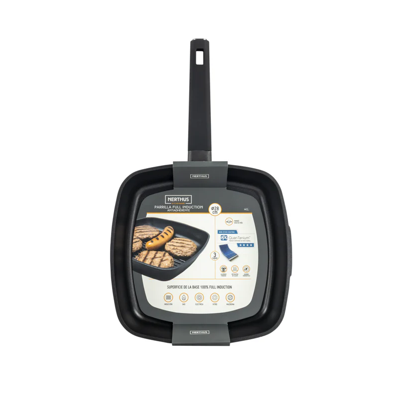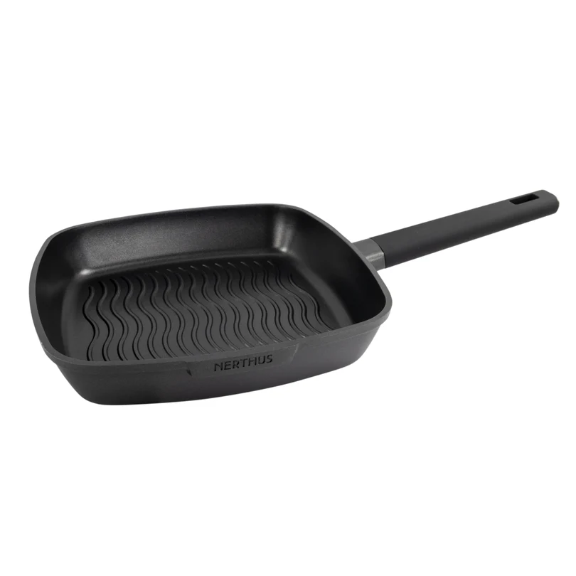 Грил тиганът 28 см на Nerthus с покритие Quantanium е създаден за любителите на домашното барбекю и качественото готвене. Изработен от здрав лят алуминий, той осигурява равномерно разпределение на топлината и поддържа оптимална температура, така че месото, рибата и зеленчуците да получават красиви грил следи и наситен вкус.