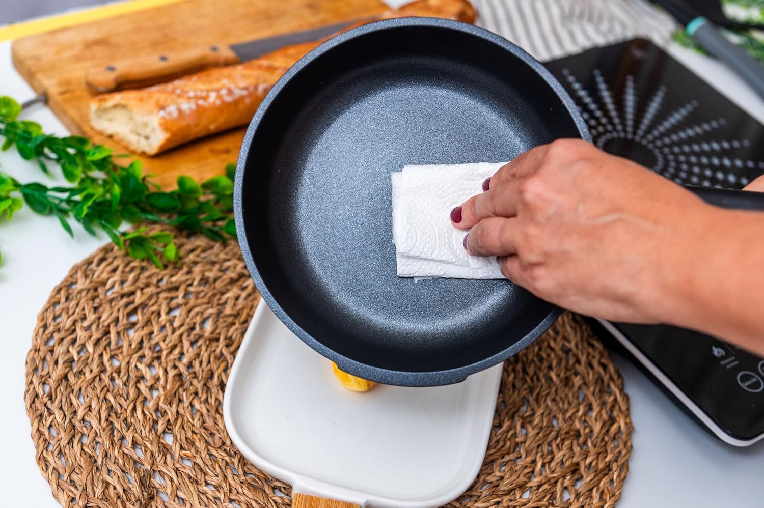 Този тиган е идеален избор за пържене, сотиране, приготвяне на месо, зеленчуци, омлети и ежедневни ястия, като съчетава издръжливост, безопасност и отлична производителност. Продукт, който носи професионални резултати в домашната кухня.