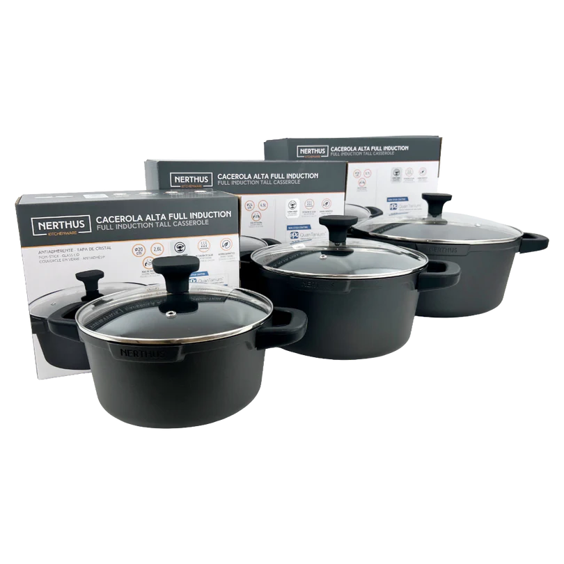 Тенджерата от лят алуминий с капак и незалепващо покритие Quantanium на Nerthus е практичен и надежден съд за ежедневно готвене. Подходяща е за супи, сосове, варене, задушаване и ястия, които изискват равномерно разпределение на топлината.