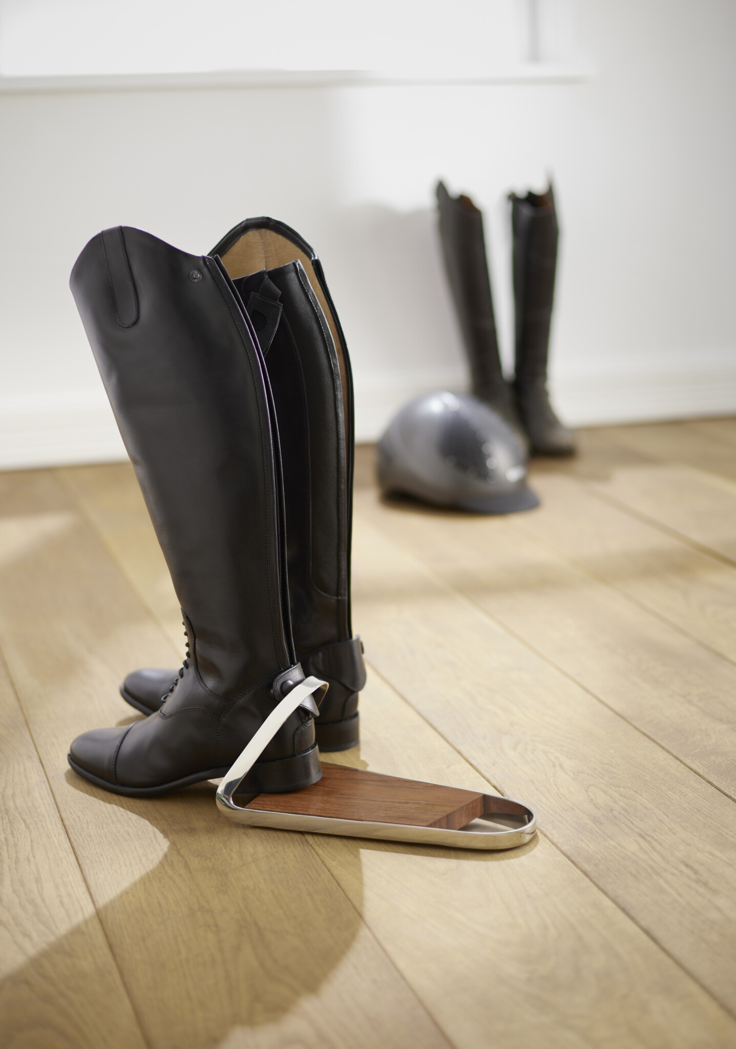 Този елегантен асистент за събуване на обувки от PHILIPPI веднага впечатлява с висококачествената си конструкция и изработка от неръждаема стомана, комбинирана с акациева дървесина.
