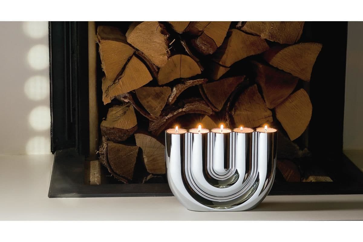 Свещникът DOUBLE U има елегантно извита форма, създава приятна атмосфера и привлича всички погледи.