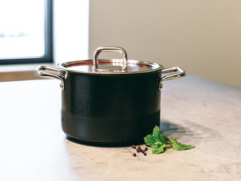 Изработена от висококачествена неръждаема стомана с черно външно покритие. Дръжките поддържат комфортна температура, за да осигурят по-практична и безопасна работа. Не използвайте абразивни гъби и препарати. Съвместима с всички източници на топлина, включително индукция.