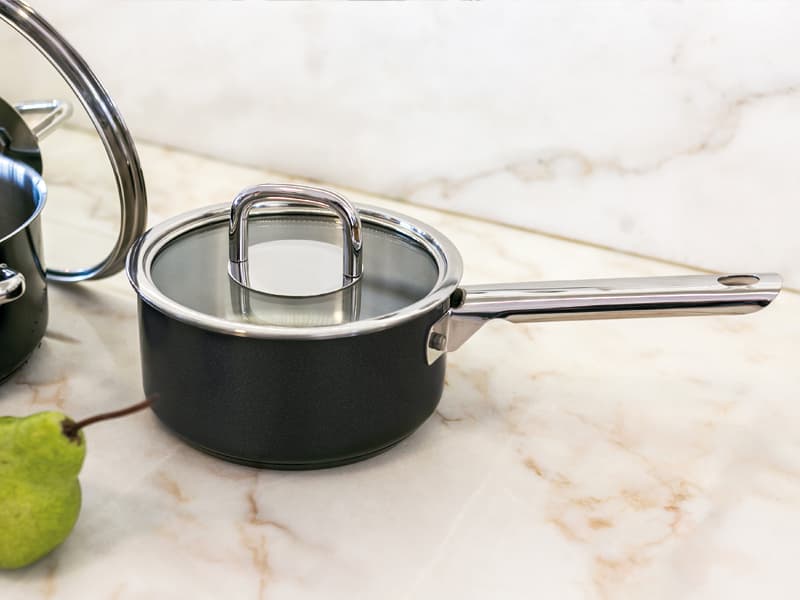 Изработен от висококачествена неръждаема стомана с черно външно покритие. Дръжката поддържа комфортна температура, за да осигури по-практична и безопасна работа. Не използвайте абразивни гъби и препарати. Съвместим с всички източници на топлина, включително индукция.