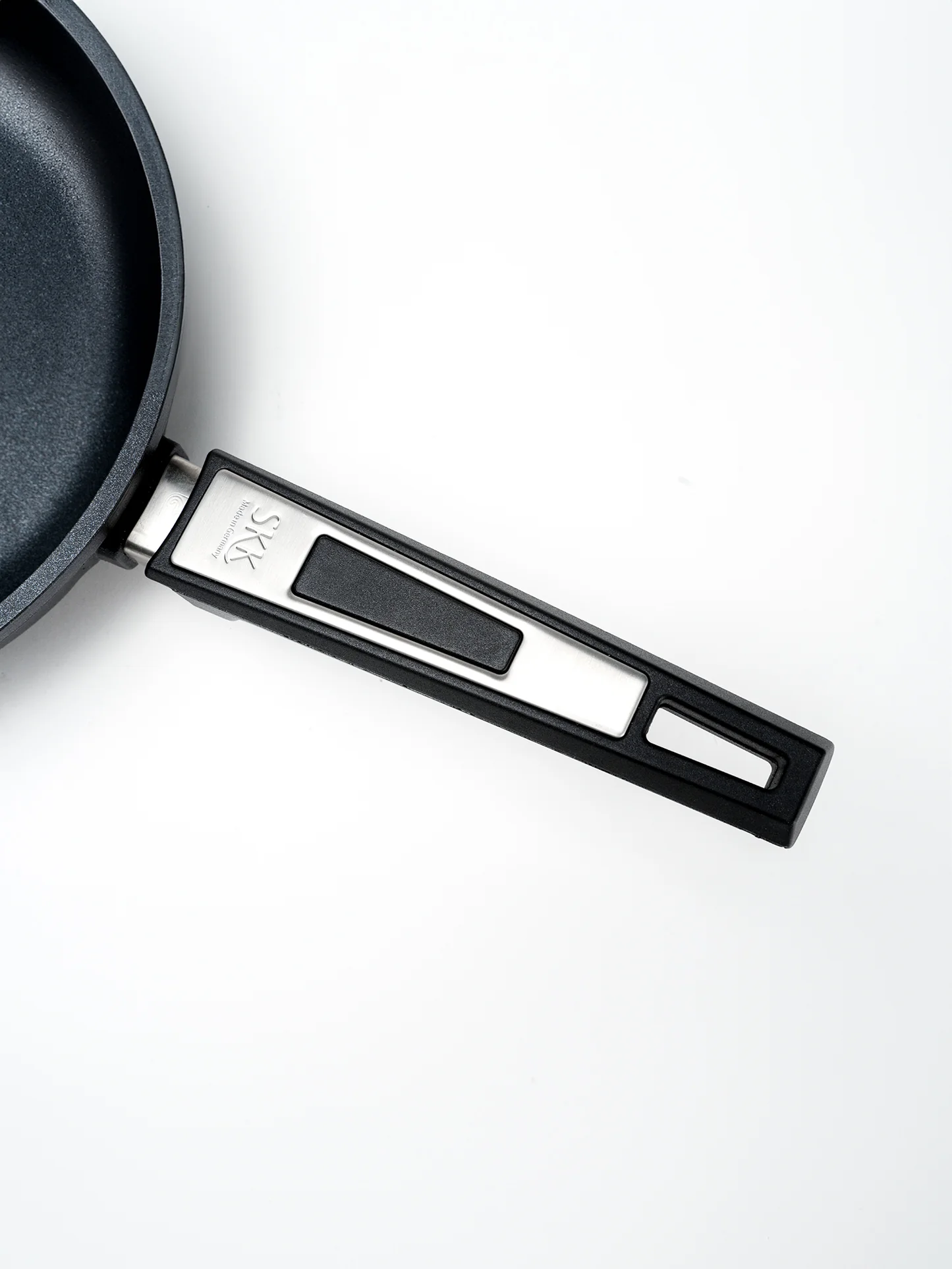 Вече повече от 40 г. SKK, Германия произвежда съдове за готвене, които непрекъснато надвишават очакванията на нашите клиенти. В производството на SKK се използват само безвредни алуминиеви сплави (без разтворими и тежки метали), сертифицирани по ISO 9000, които са без съдържание на никел и гарантират здравословно приготвяне на храната.