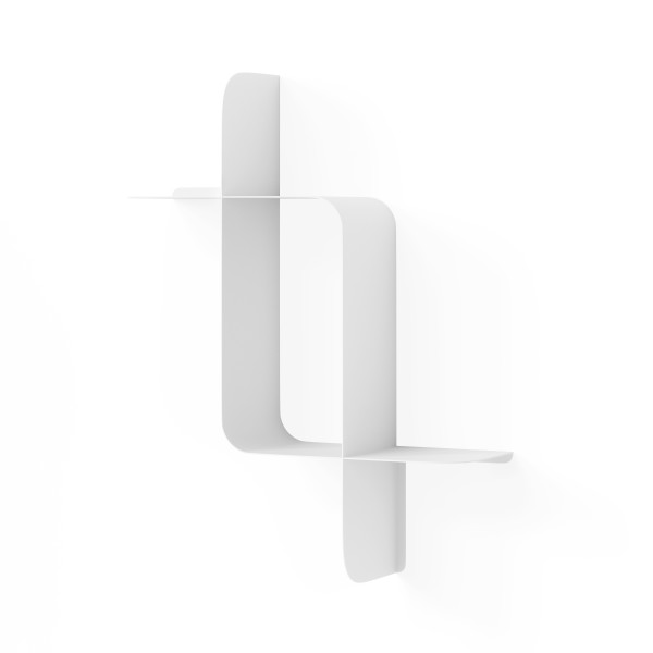С дързък, геометричен дизайн, рафтът стои като декоративен елемент дори и празен върху стената.