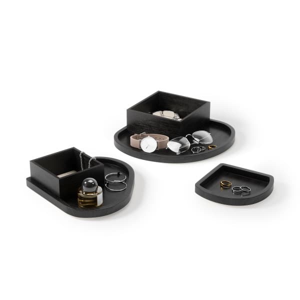 С три нива за съхранение и скрити отделения, Cove съхранява бижутата и аксесоарите спретнато прибрани, но леснодостъпни. Меката ленена подплата предотвратява надрасквания и заплитане, а нежните ѝ извивки и топлите дървесни тонове добавят естествена елегантност към вашия скрин, нощно шкафче или тоалетка.