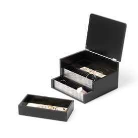 С три нива на съхранение, MALIBU предлага много място за спретнато прибиране на бижута и аксесоари, а меката ленена подплата предотвратява надрасквания и заплитане.