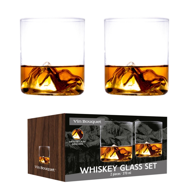 Комплектът чаши за уиски Vin Bouquet превръща всяка глътка в уникално преживяване. Релефното дъно с форма на планина създава поразителен визуален ефект при сервиране на уиски или други спиртни напитки, което ги прави ексклузивни и елегантни.